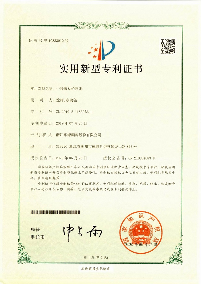 華源顏料六項(xiàng)專利喜獲授權(quán)
