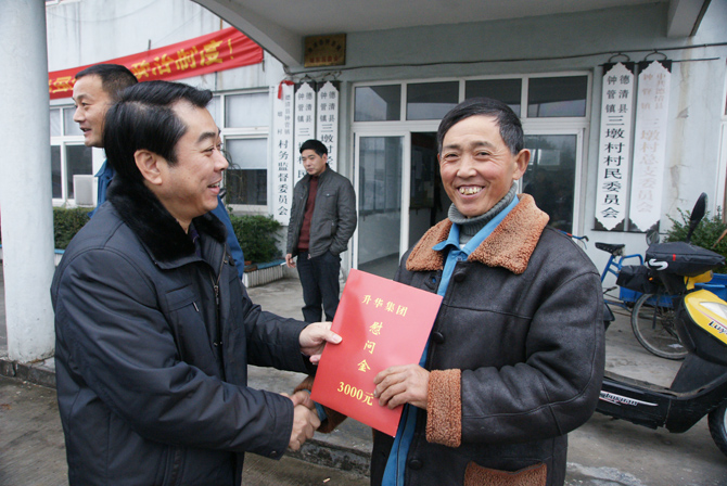 集團(tuán)公司副總經(jīng)理鮑希楠當(dāng)天一同率領(lǐng)一支愛(ài)心分隊(duì)慰問(wèn)困難家庭,他表示,幫助困難群體、資助貧困大學(xué)生、贊助村民會(huì)所建設(shè)等社會(huì)公益事業(yè)是升華長(zhǎng)期以來(lái)堅(jiān)持不懈的善舉。今后,在企業(yè)發(fā)展的同時(shí),這些慈善的公益行動(dòng)將成為升華的工作常態(tài)。