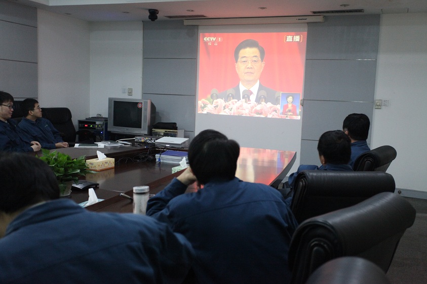 11月8日上午9點不到,集團公司行政大樓三樓會議室早已座無虛席,當天在公司的行政支部全體黨員干部早就聚集在一起,準備通過會議室內(nèi)的電視顯示屏,觀看即將在北京人民大會堂召開的中國共產(chǎn)黨第十八次全國代表大會的現(xiàn)場直播。