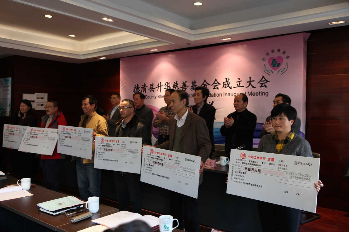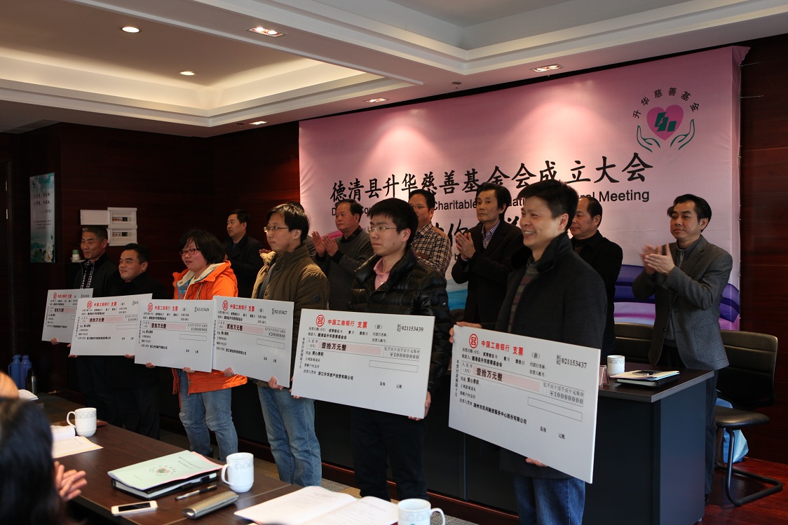 1月10日,經(jīng)過(guò)緊張籌備,由升華集團(tuán)高層倡議發(fā)起的德清縣升華慈善基金會(huì)正式成立。副縣長(zhǎng)陳健、縣慈善總會(huì)會(huì)長(zhǎng)柴志良、縣民政局副局長(zhǎng)沈云龍出席升華慈善基金會(huì)成立大會(huì),并對(duì)升華慈善基金會(huì)的成立表示祝賀。公司領(lǐng)導(dǎo)夏士林、錢(qián)海平、鮑希楠等參加了升華慈善基金會(huì)成立大會(huì)。吳夢(mèng)根主持會(huì)議。