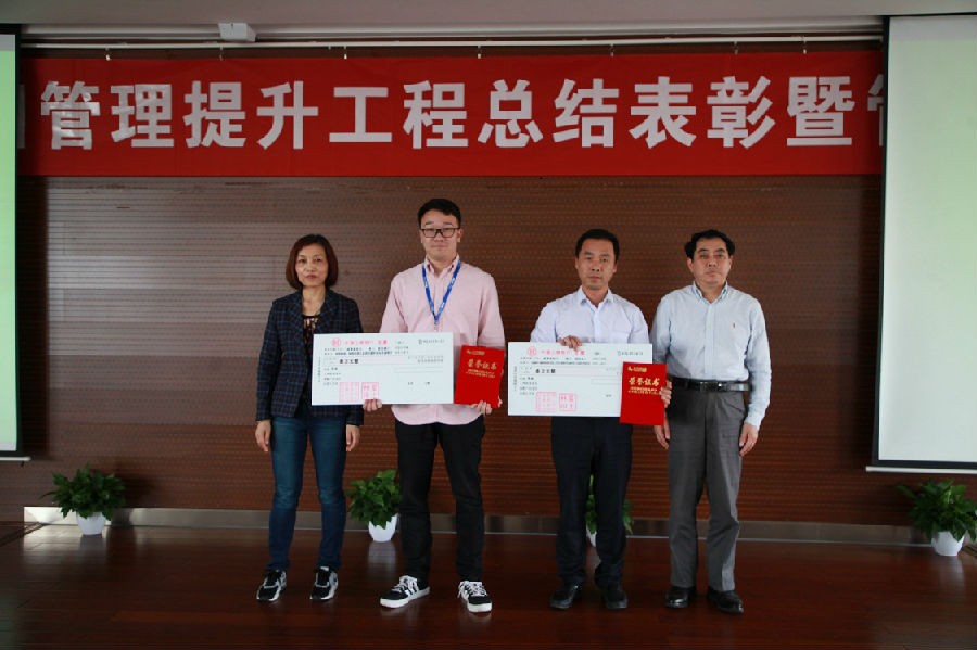 會上,云峰新材、華源顏料兩個管理提升工作領導小組受到集團公司表彰獎勵,《電磁鐵代替人工清桶——降本提質(zhì)、強化安全》等26個成果項目分獲管理提升第三段管理提升優(yōu)秀成果一、二、三等獎和鼓勵獎。集團公司領導夏士林、吳夢根、王菊平、朱根法、王鋒、鮑希楠等分別為優(yōu)秀團隊、優(yōu)秀成果獎獲獎項目組頒獎。