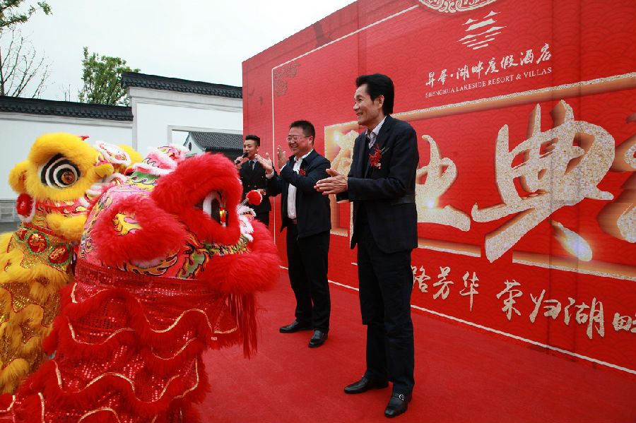 4月11日上午,備受眾人期待的升華·湖畔度假酒店揭開神秘面紗,正式開業(yè)了。德清縣委副書記王偉鋒,副縣長姚夏林,縣府辦副主任蔡勤鋒,下渚湖街道黨工委書記丁本榮,縣政府相關(guān)部門負責人,升華集團領(lǐng)導夏士林、吳夢根、錢海平、王菊平、朱根法、鮑希楠,集團所屬一級子公司董事長,集團公司各部門負責人參加了開業(yè)典禮。